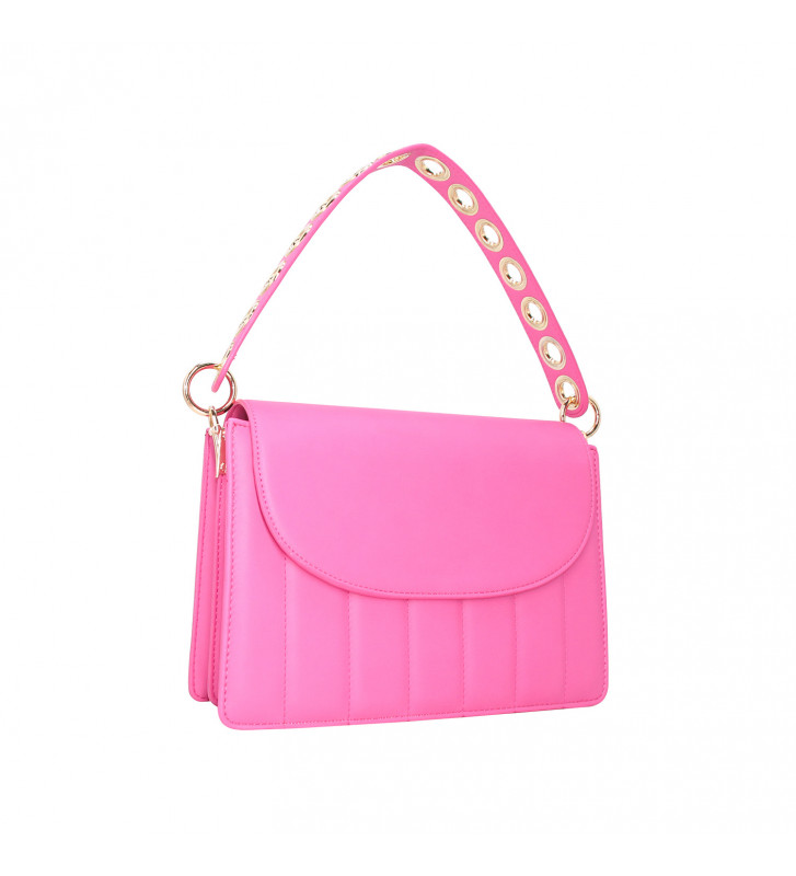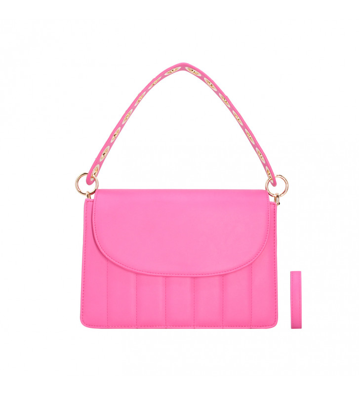Sac porté épaule ou en bandoulière, rigide, avec rabat lisse, et face avant matelassée